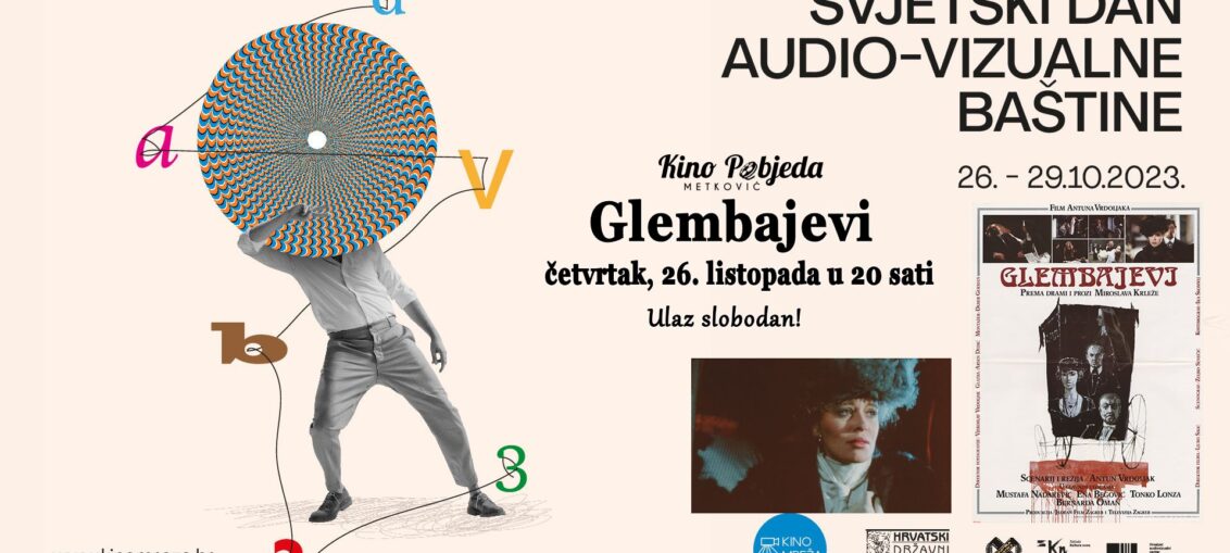 Povodom Svjetskoga dana audiovizualne baštine u Kinu 'Pobjeda' Metković u četvrtak, 26. listopada s početkom u 20 sati na rasporedu je projekcija filma 'Glembajevi' – glasovita ekranizacija dramskog klasika Miroslava Krleže. Radi se o filmu Antuna Vrdoljaka iz 1988. godine, a u kojem je glasovita glumačka postava – Ena Begović, Mustafa
