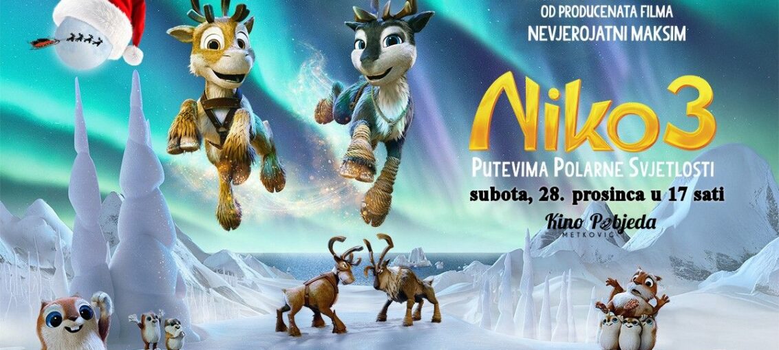U Kinu 'Pobjeda' Metković u subotu, 28. prosinca s početkom u 17 sati na rasporedu je animirani film 'Niko 3: Putevima polarna svjetlosti', sinkroniziran na hrvatski jezik. Nakon tužnog rastanka, Niko napušta svoju obitelj kako bi zauzeo mjesto uz svog oca Prancera kod Letećih snaga Djeda Mraza. Za Niku je to