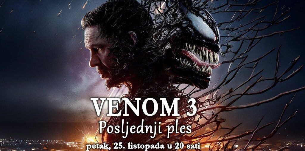 U Kinu 'Pobjeda' Metković u petak, 25. listopada s početkom u 20 sati na rasporedu je akcijska SF avantura 'Venom 3: Posljednji ples'. U finalnom nastavku trilogije, Venom 3: Posljednji ples, Tom Hardy vraća se kao Venom, jedan od najvećih i najkompleksnijih likova. Eddie i Venom su u bijegu. Progonjeni od